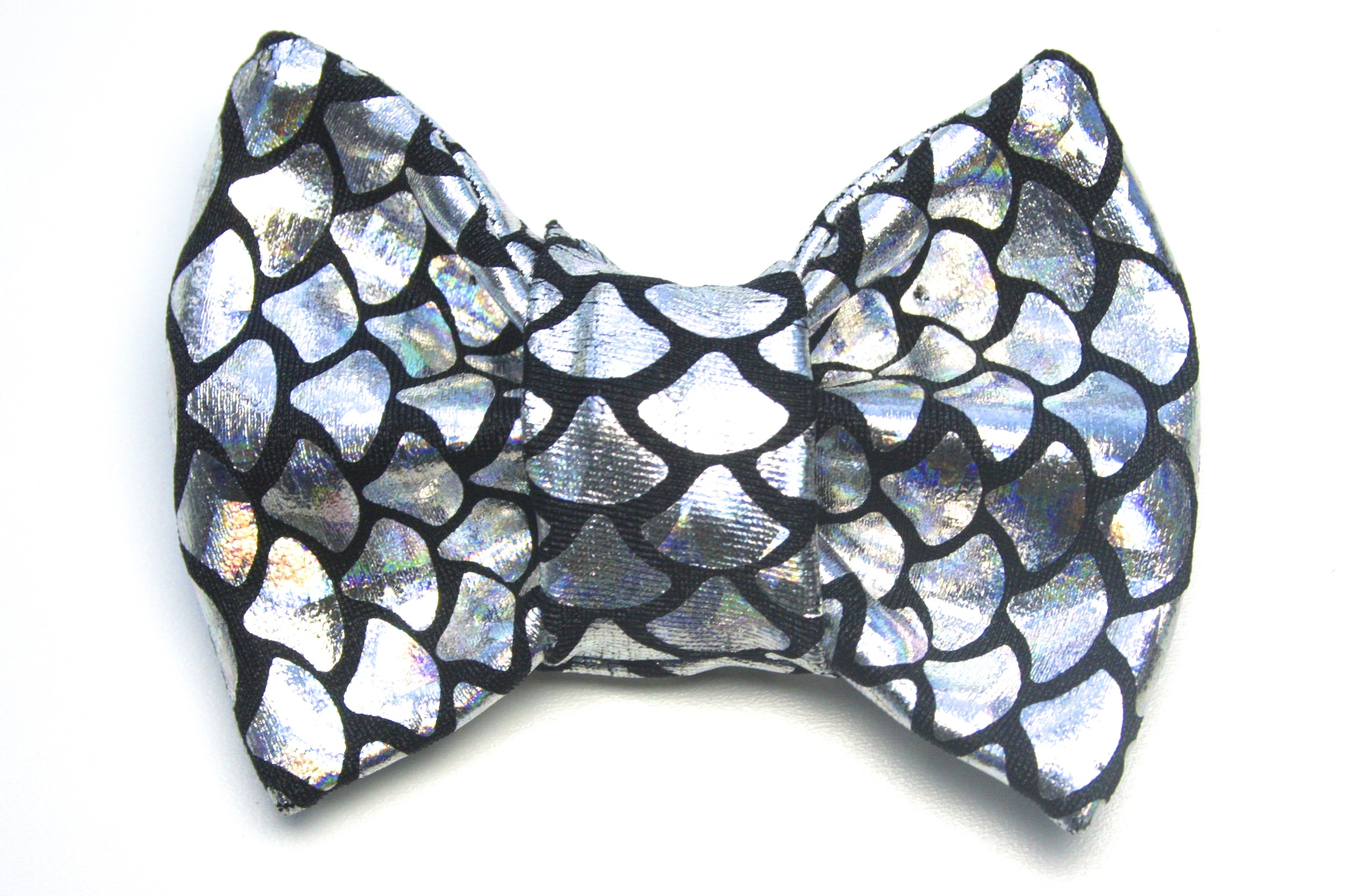 Here at Business Catual our goal is to use recycled materials to create pawsitively purrfect bow ties for cats. We are a pet furiendly business intergalactically located in Portland, Oregon, and a portion from Every bow tie is donated to animal welfare organizations! All bowties are handmade with recycled materials. Our cat bow ties simply attach to any collar by sliding the collar through the loop on the back of the bow tie!